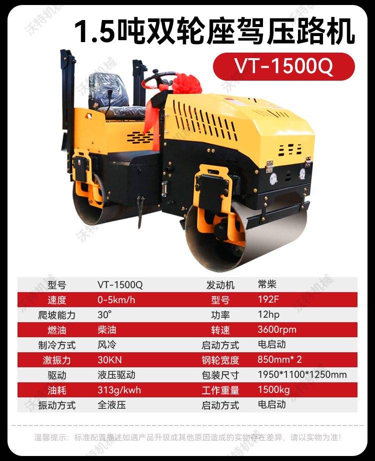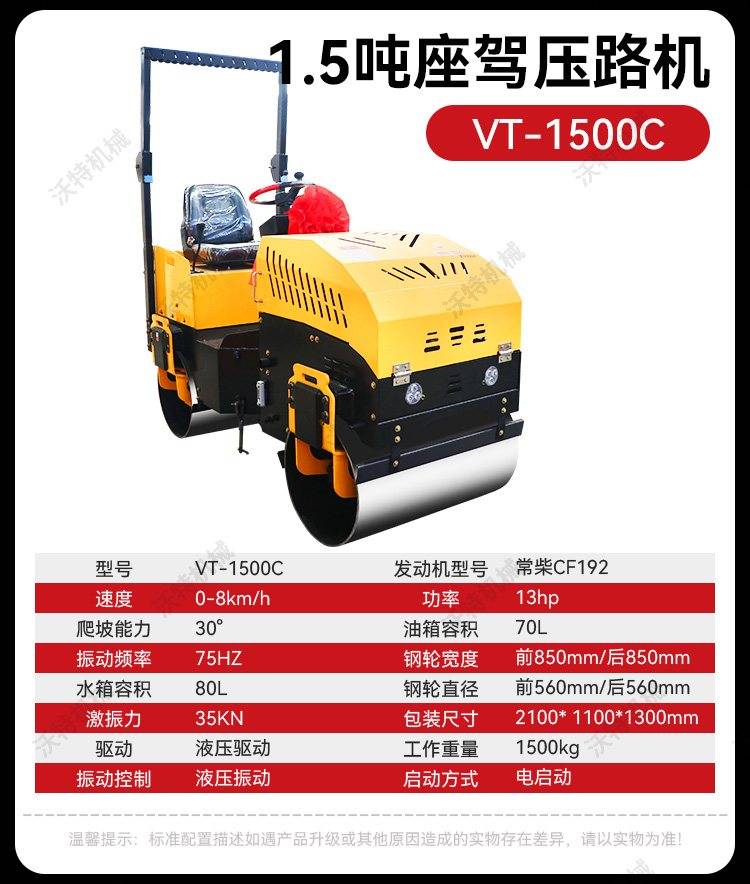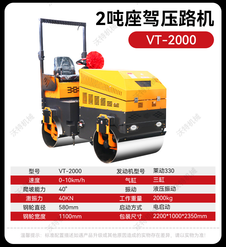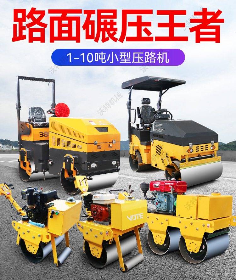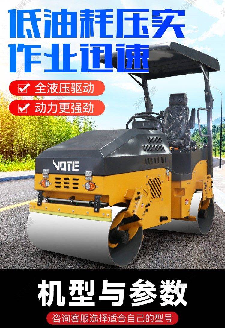2吨1吨带照明灯压土碾双钢轮座驾双驱道路修正小型压路机